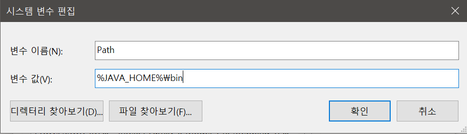 3 ) PATH에는 JDK의 bin 디렉토리를 '%JAVA_HOME%\bin' 으로 지정한다.
