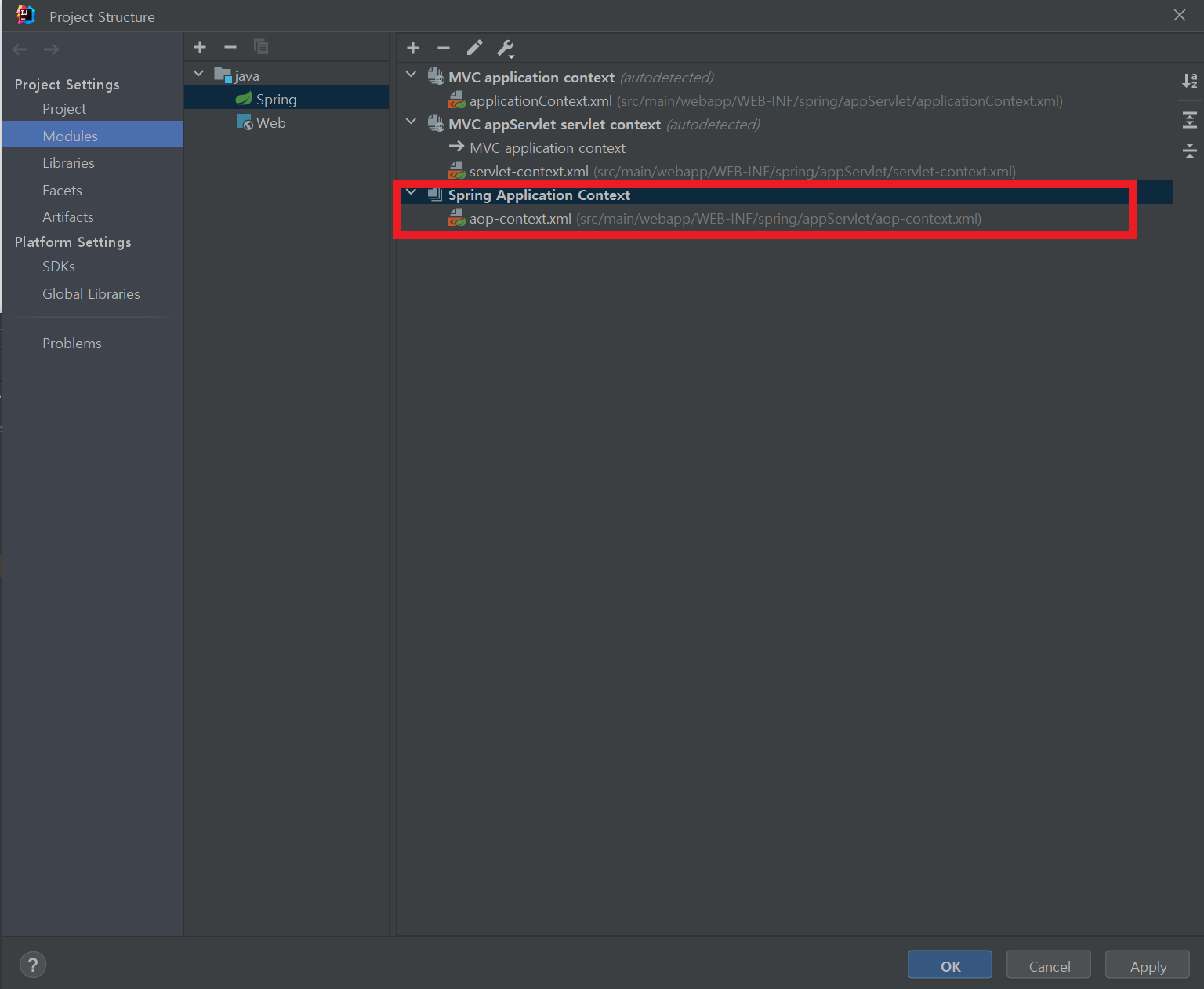 aop-context.xml(Spring 설정파일)이 mapping 되지 않았다는 뜻인데, 이를 해결하는 방법을 기록해두려 한다.