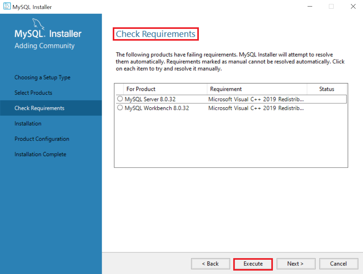8 ) 넘어가니 나는 Check Requirements 창이 떴다. Execute 버튼을 클릭하고 필요한 부분을 설치한다.