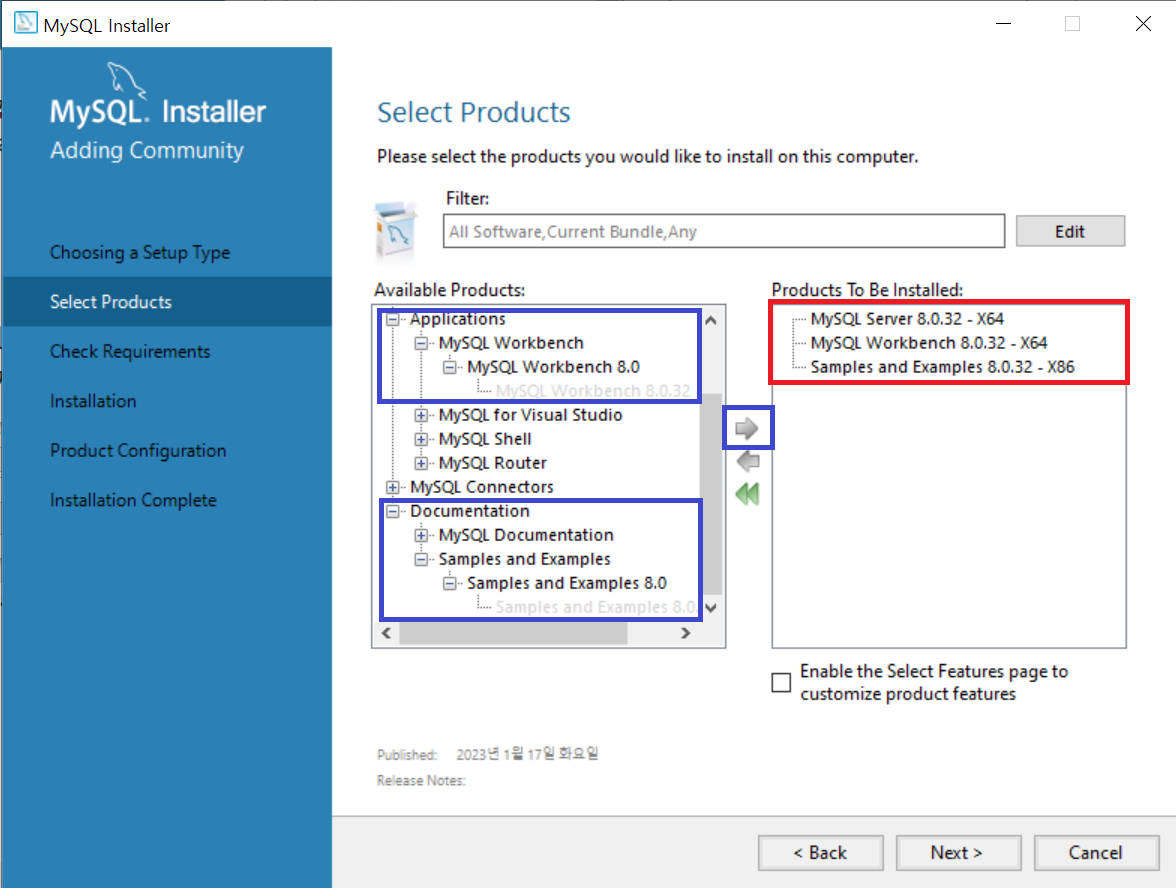 16 ) 이제까지는 MySQL Server 8.0.32의 설정을 완료한 것이고, 이제 Samples and Examples의 설정을 시작한다.