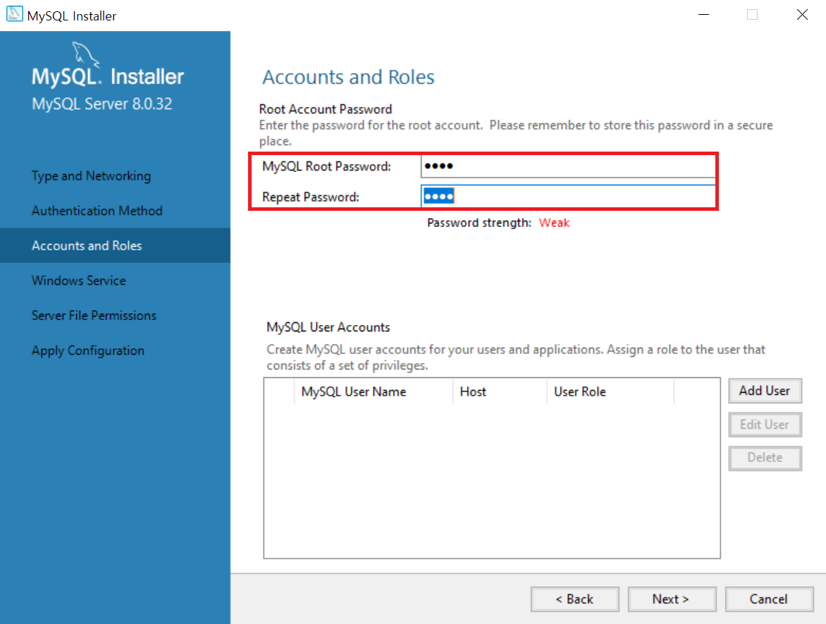13 ) MySQL 서버를 윈도우즈의 서비스로 등록하기 위한 설정을 진행한다.