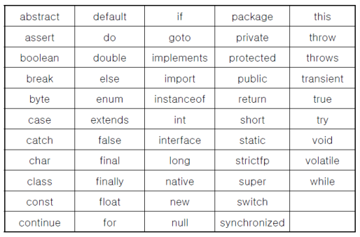 4. 특수문자는 '_'(under bar)와 '$'만 허용