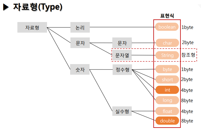 자료형 : 생성할 변수에 어떤 종류의 값이 들어갈지 타입을 지정